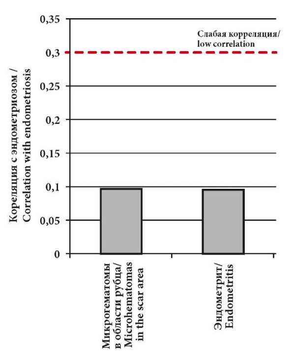 Рисунок 3. Корреляция осложнений после ОКС и эндометриоза рубца по данным гистологического исследования