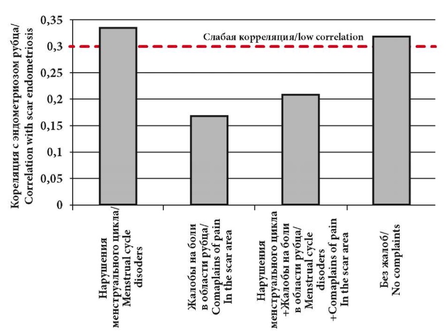 Results: our correlation analysis revealed that in most cases, uterine scar endometriosis was asymptomatic, however, in rare cases, a connection was observed between patients’ complaints of abnormal uterine bleeding (AUB) and uterine scar endometriosis. The absence of complaints in endometriosis confirms its asymptomatic course. Due to the latent and difficult to diagnose course of the disease, as part of pre-pregnancy preparation in women with a uterine scar, it is necessary to use a comprehensive diagnostic approach, combining non-invasive methods with hysteroscopy, to increase the frequency of detection of scar endometriosis. This will allow timely surgical treatment and prevent disease progression.
