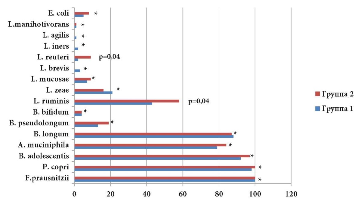 Таким образом, полученные результаты продемонстрировали определённые видовые отличия в микробиоме кишечника у здоровых лиц и у пациентов с ожирением.